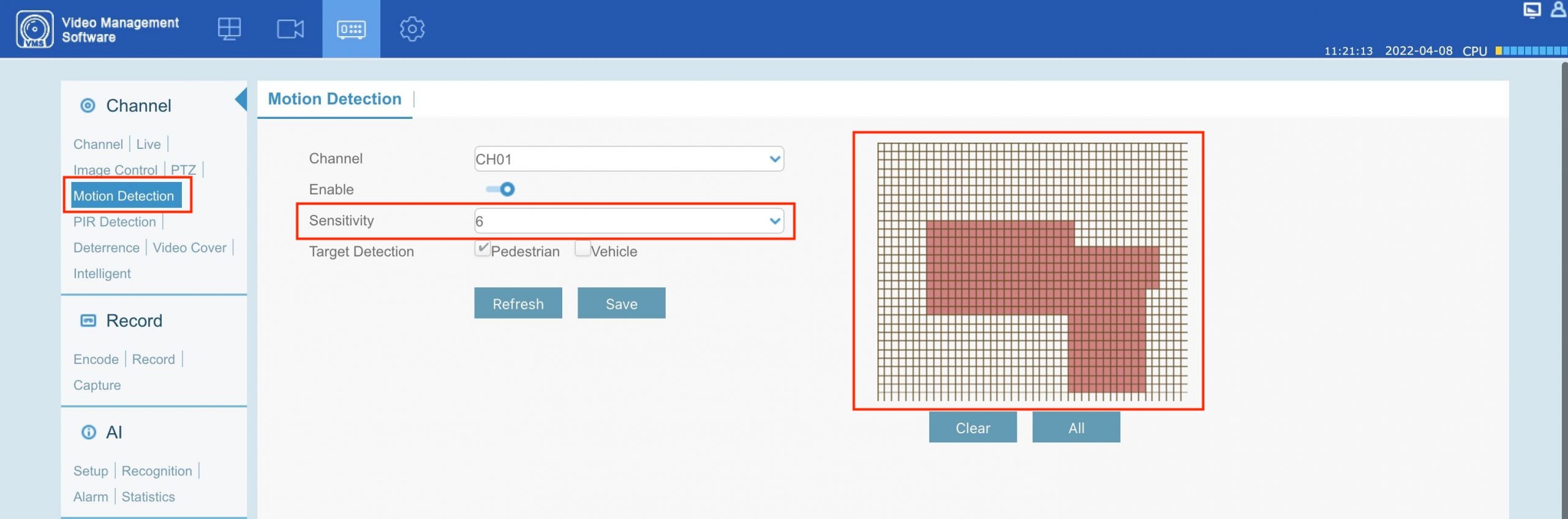 - U kunt hier ook een bewegingsgebied instellen. U kunt dit doen door uw rechtermuisknop ingedrukt te houden en te verslepen over het beeld.