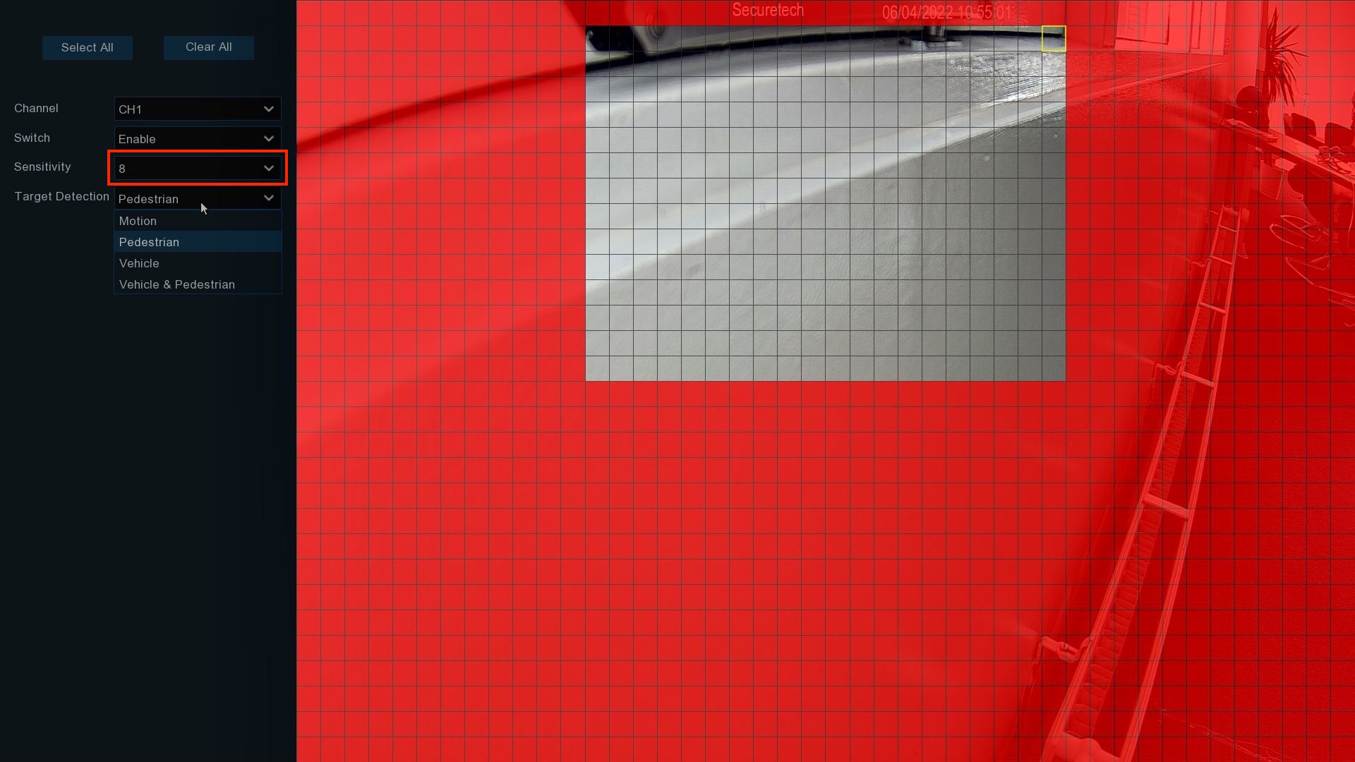 - U kunt hier ook een bewegingsgebied instellen. U kunt dit doen door uw rechtermuisknop ingedrukt te houden en te verslepen over het beeld. Alles wat gemarkeerd is (rood) is ingesteld op het bewegingsgebied. Alles wat doorzichtig is, is uitgesloten.
