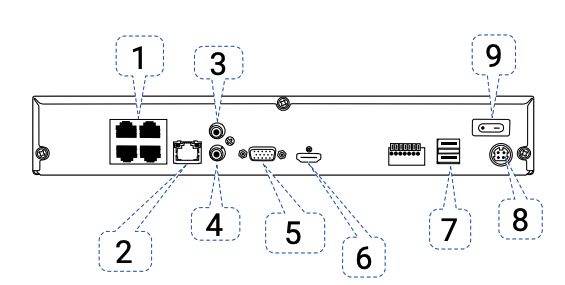 - Sluit een ander scherm aan met HDMI(nummer 6) of VGA(nummer 5) aansluiting.